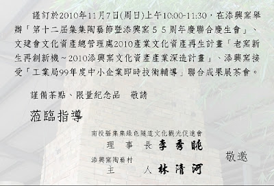 今年的陶藝節即將在2010年11月7日於添興窯隆重舉辦,