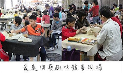 由促進會理事長李秀眺頒獎給家庭陶藝趣味競賽第一名得獎家庭。