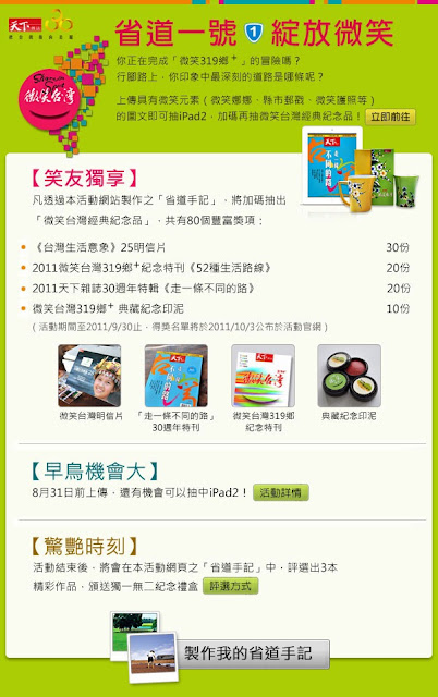 創作屬於您的省道手記,將加碼抽出「微笑台灣經典紀念品」共有80個豐富獎項...