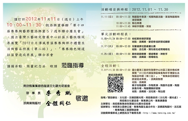 誠摯邀請各位貴賓參與集集陶藝節系列活動!