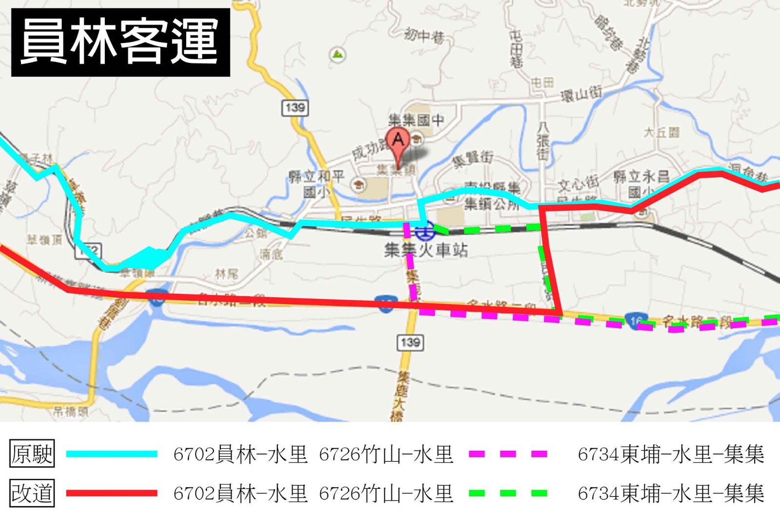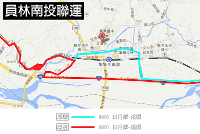 配合「2013南投火車好多節開幕式」暨「集集盃綠色隧道半程馬拉松賽」活動期間交通管制, 員林、南投及總達客運調整營運路線。 調整之路線如下: